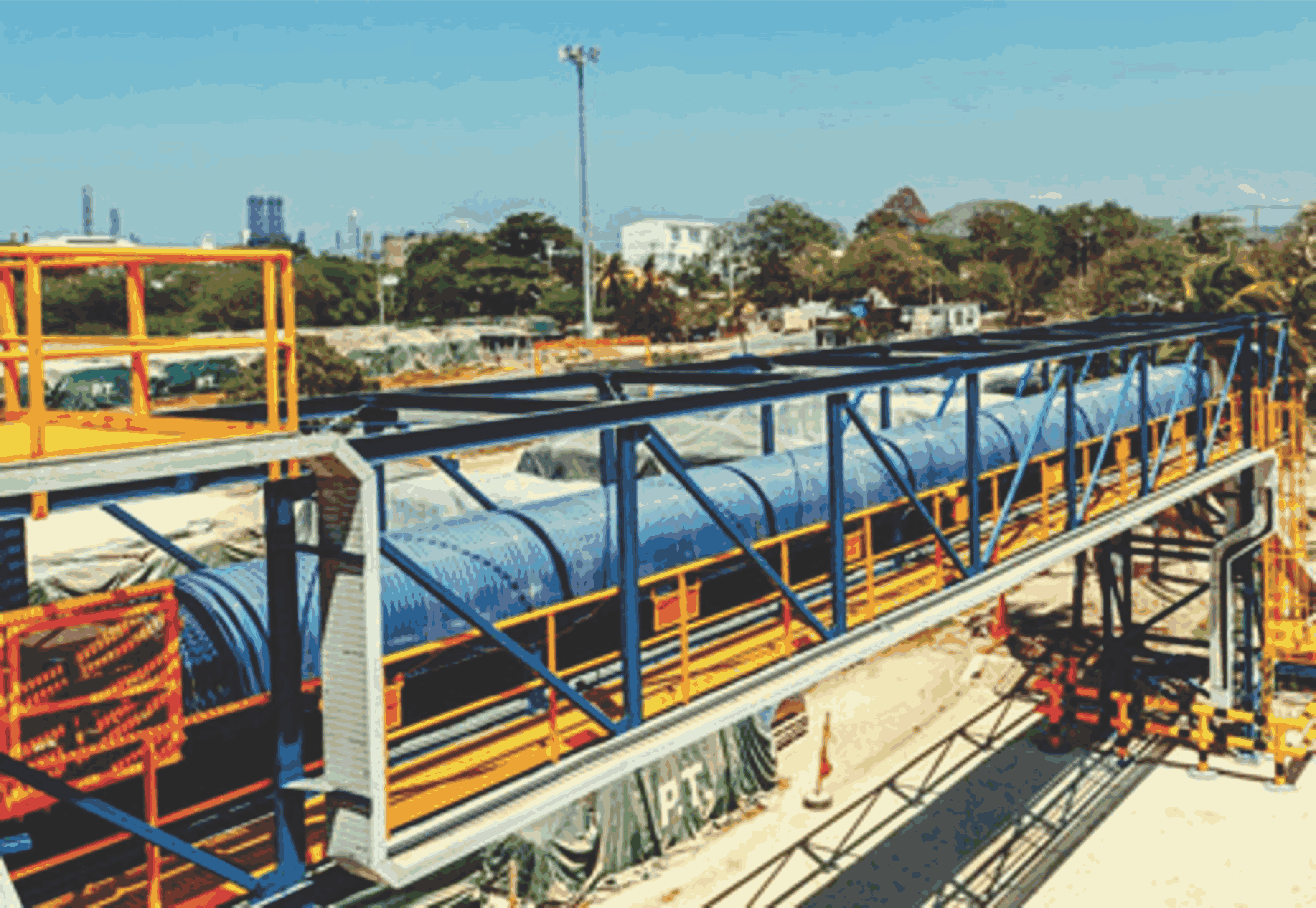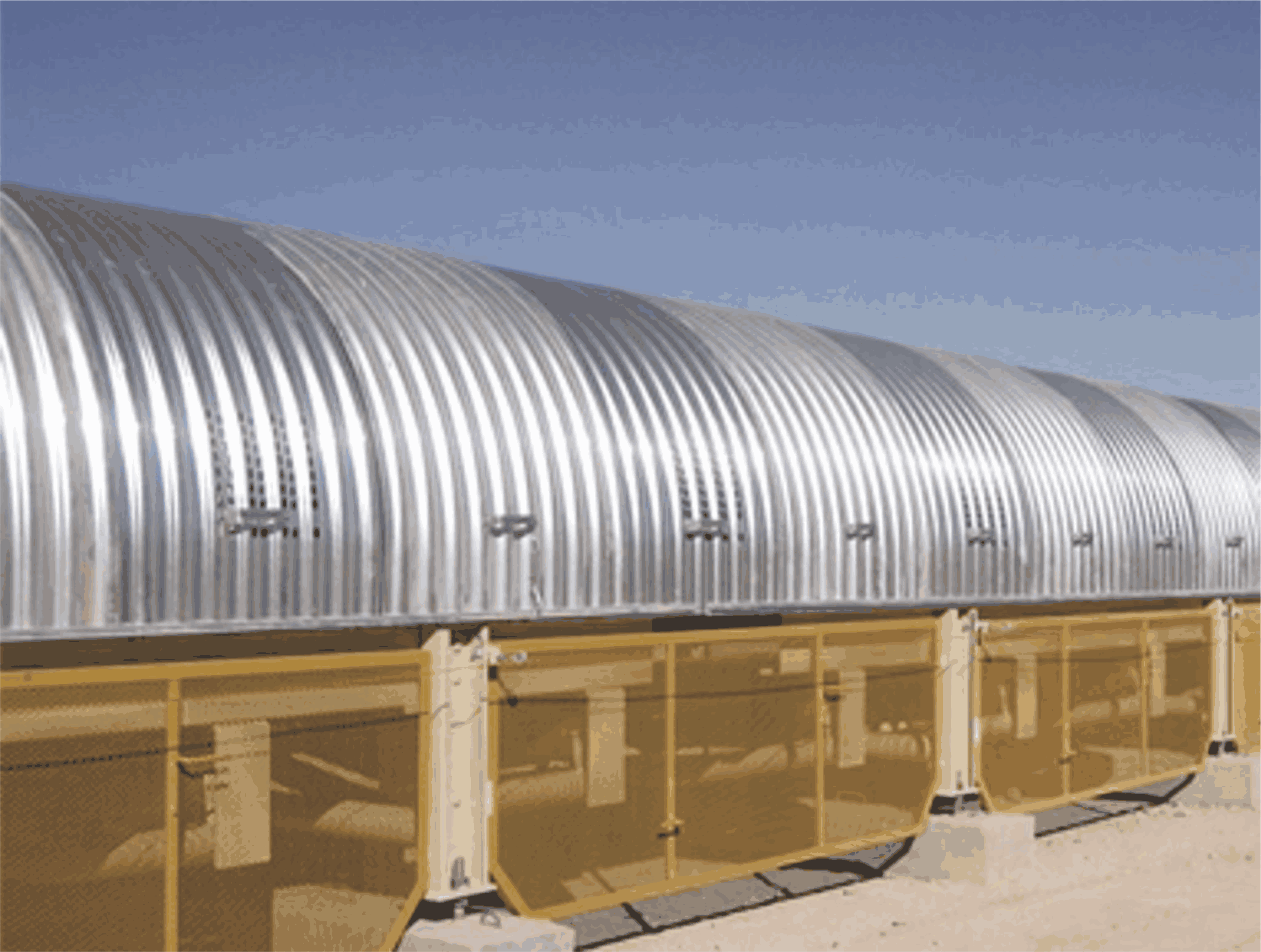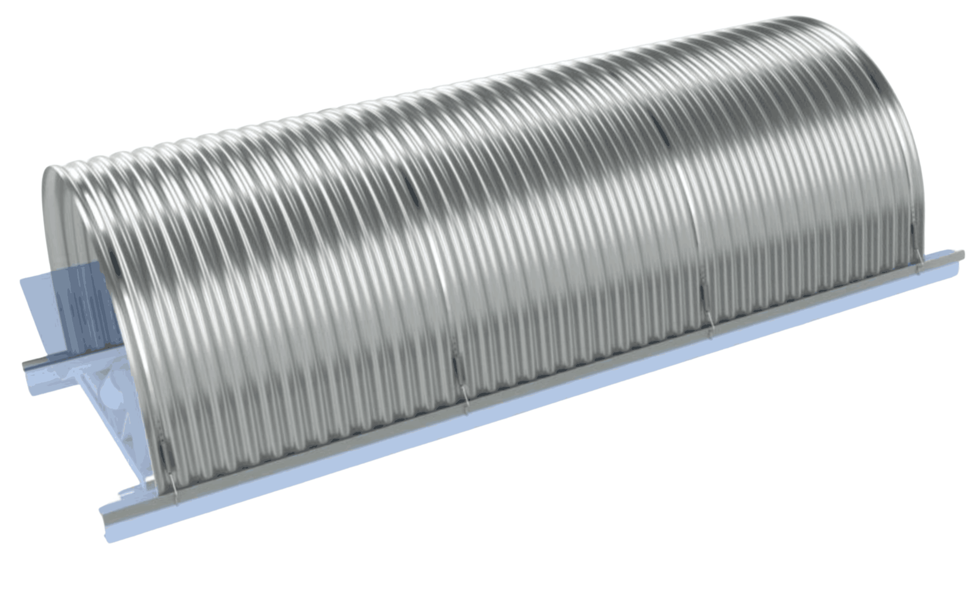 A Cobertura de Correia Corrugada é dimensionada para proteger o transportador e o material de uma maneira eficiente e segura. É resistente a impactos externos ou mesmo do material transportado, e conta com proteção dos raios UVA e UVB. Seu projeto permite acesso a ambos os lados do transportador, permitindo serviços no equipamento, com total segurança.