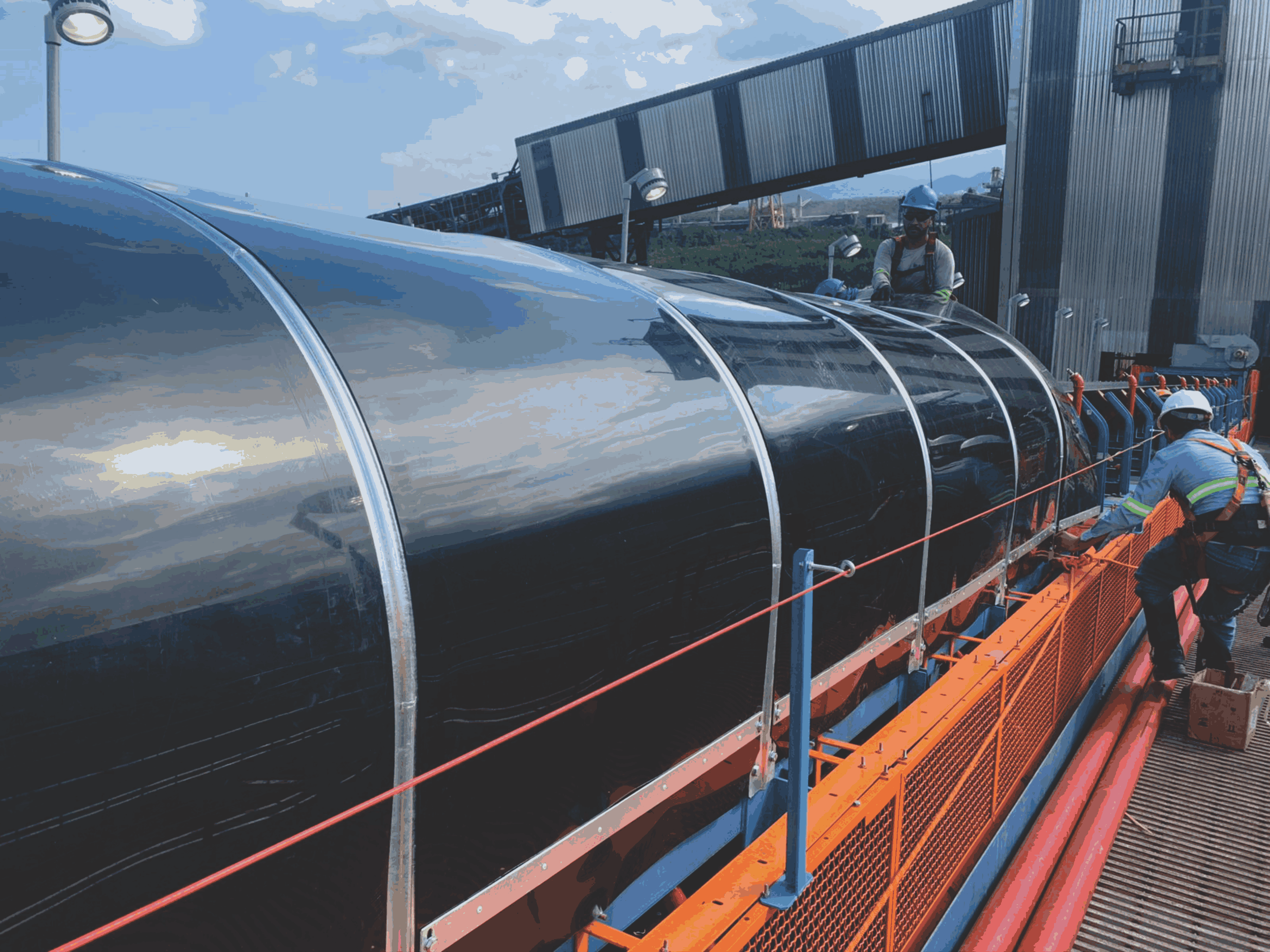 Não há necessidade de retirá-la para efetuar a manutenção dos componentes do transportador. Sua maleabilidade permite que a manta seja curvada, permanecendo fixa acima do ponto de manutenção, e assim, permitindo o total acesso aos componentes com total facilidade. Segurança máxima para os funcionários e proteção extrema para os componentes do transportador de correia e material transportado.